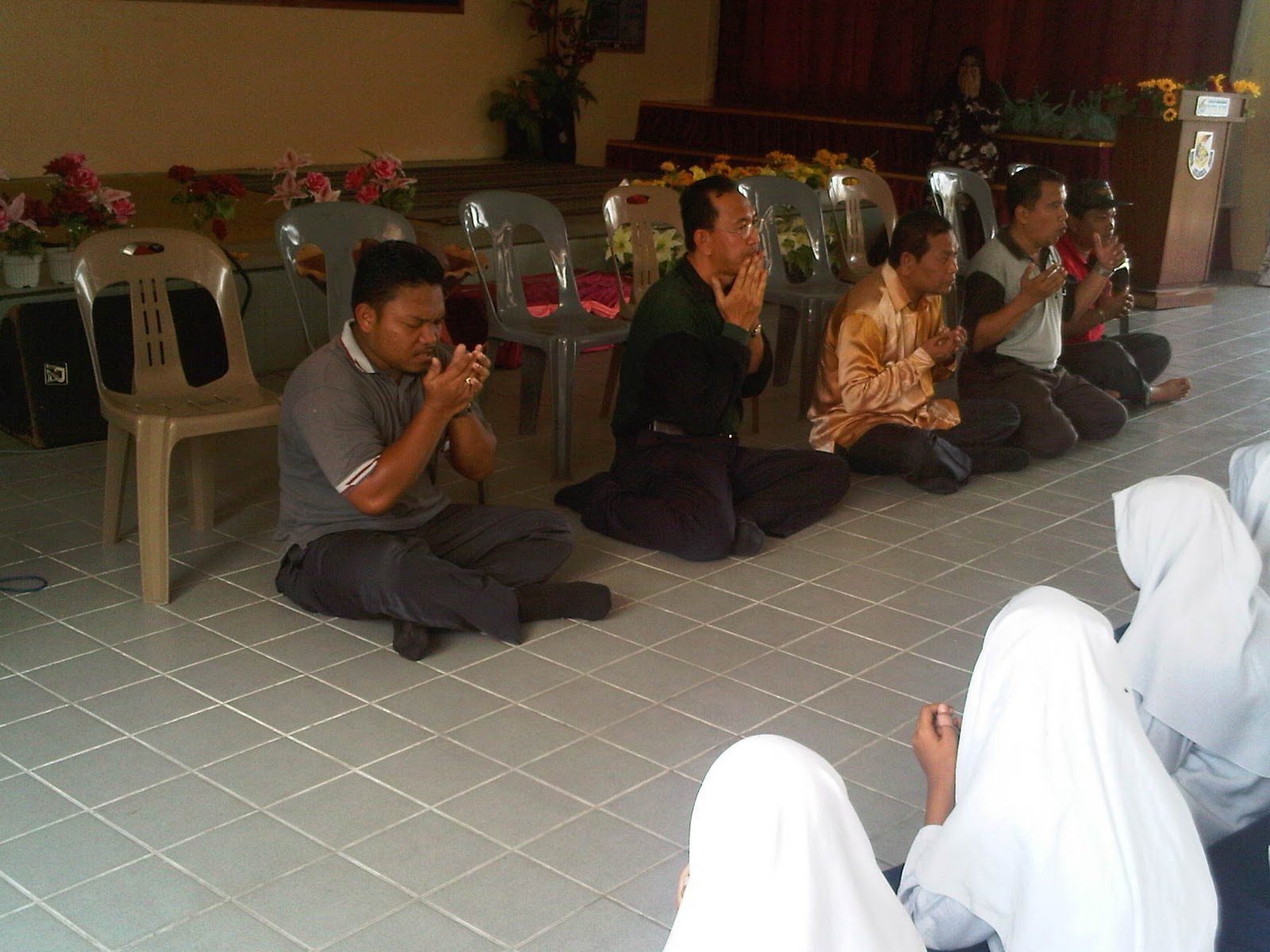 Ustaz Sekolah Kebangsaan Bota Kiri Mengetuai Bacaan Doa Sebelum Bermulanya Majlis Penyerahan Daging Qurban.